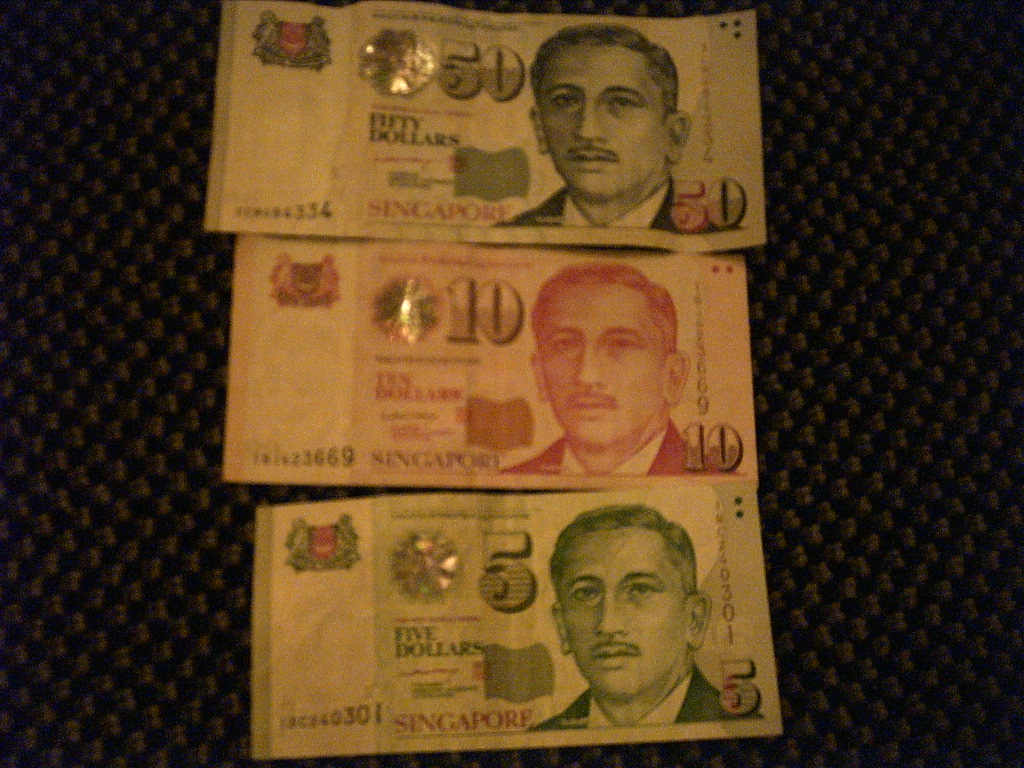 これは現地紙幣のシンガポールドル紙幣。